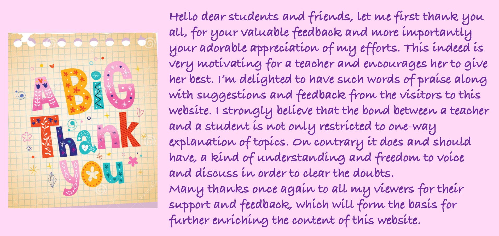 We are truly humbled by your words of appreciation & feedback. Your constant queries & questions guided us to design useful content. This was our first year of launching this site and we cannot thank you enough for your support. Your kind words mean a lot to us and encourage us to do better. While we hope that you would spread a word about this site, we do wish you great success in life….and remember education is not only knowledge but character also. Go out in the world and do your best…may God bless you all.