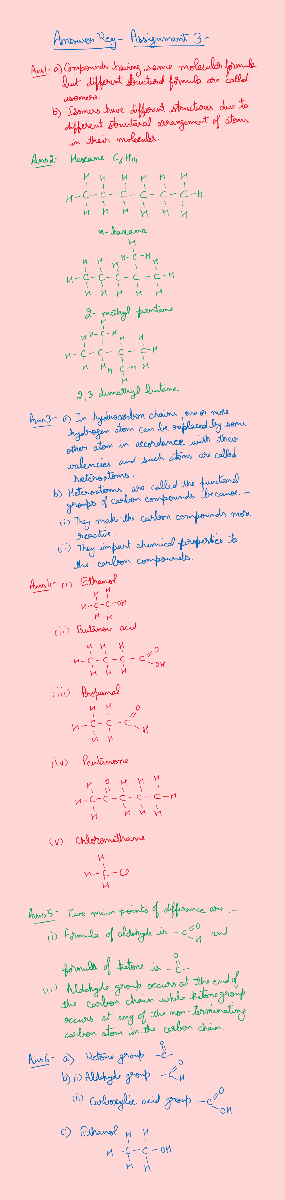 Practice and diagramatic questions on isomers and functional groups in carbon compounds.