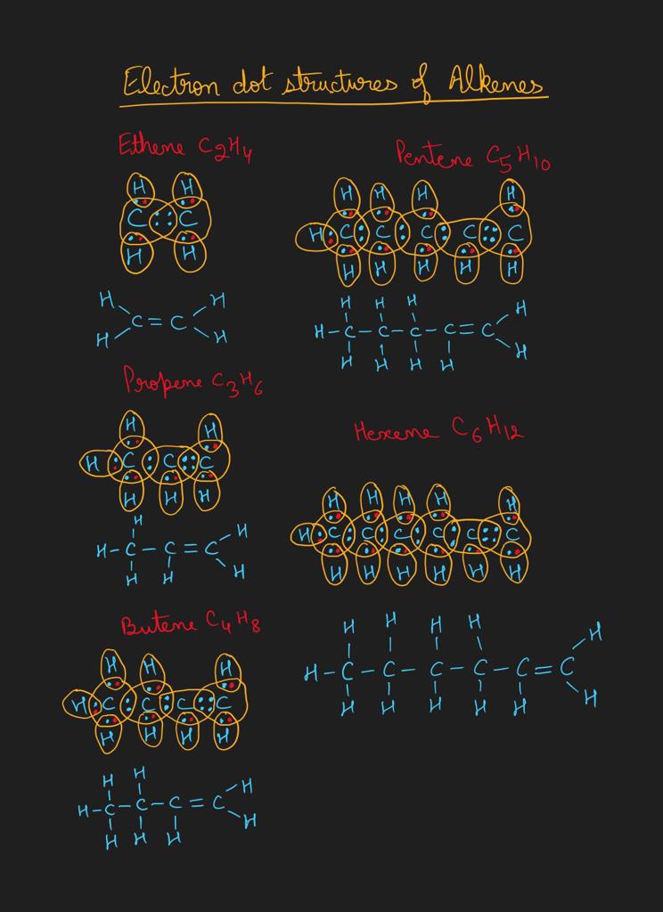 Easy and simple way to draw the electron dot structures and the structural formula for different open chain hydrocarbons-alkenes.