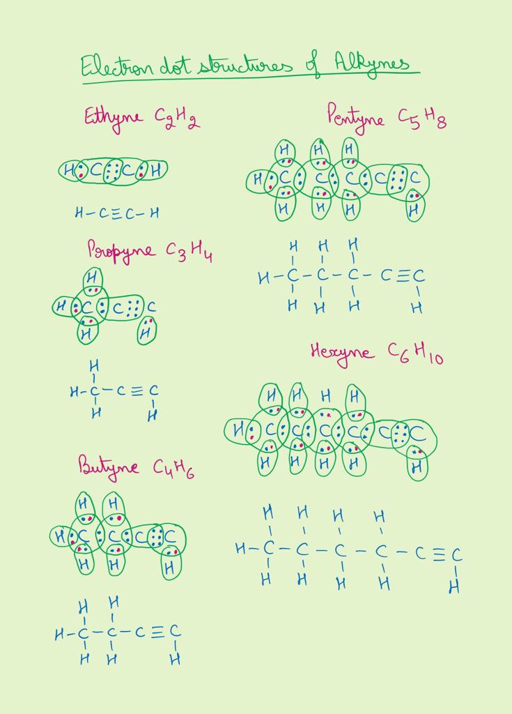 Easy and simple way to draw the electron dot structures and the structural formula for different open chain hydrocarbons-alkynes.